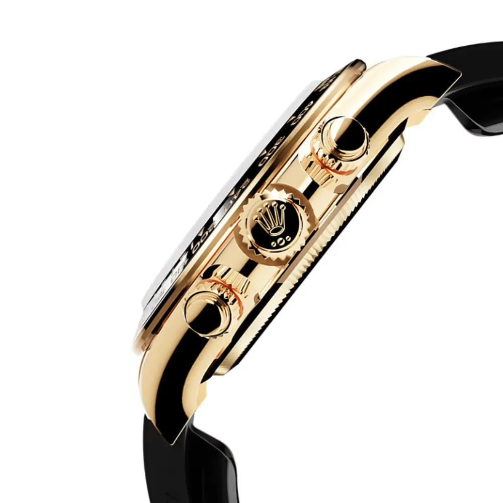 • Case: 18 kt yellow gold, 40 mm, with classic Oyster architecture including screw-down crown and chronograph pushers.