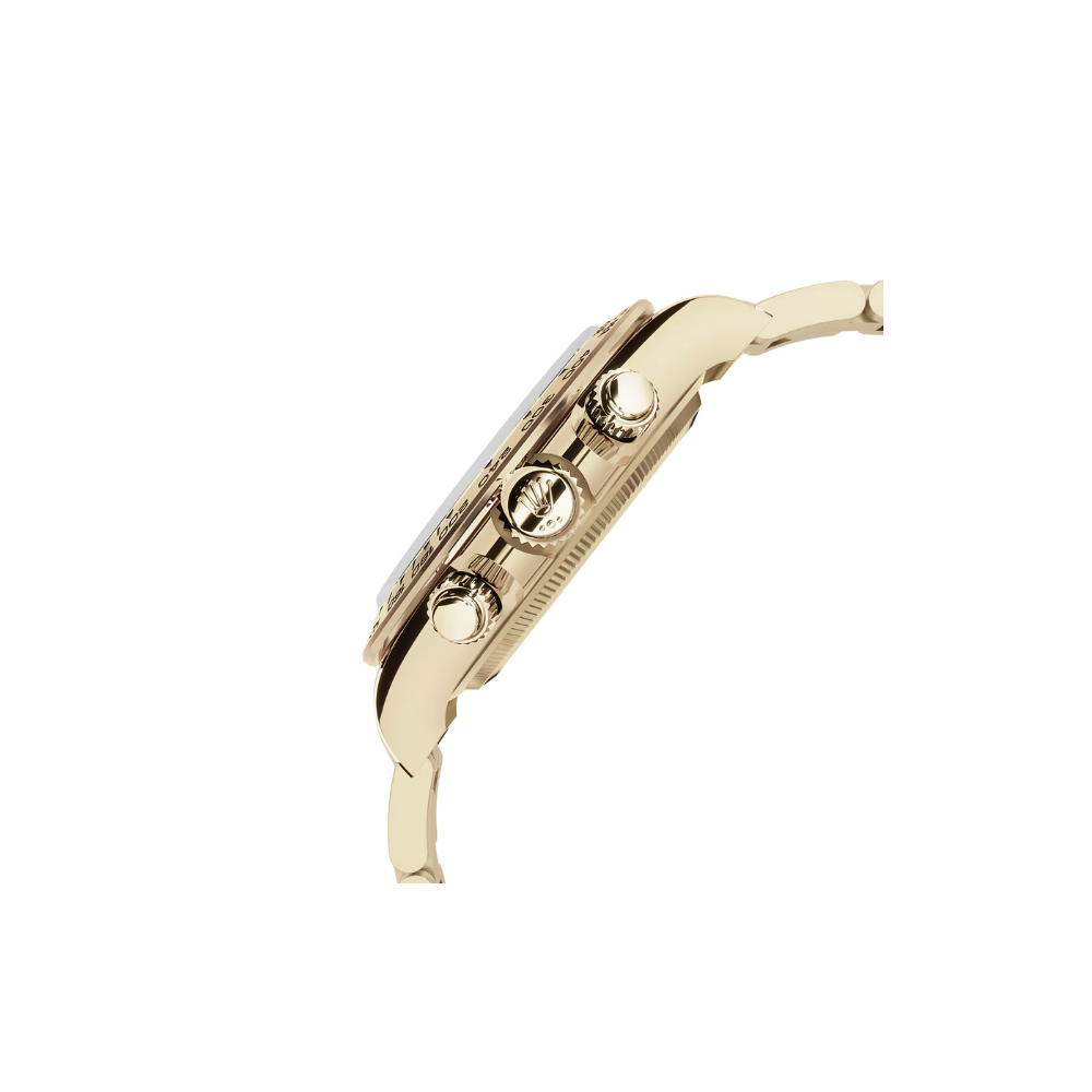 The Rolex Cosmograph Daytona 40 mm Ref. 126508‑0003 is a luxurious chronograph crafted entirely in 18 ct yellow gold. This opulent model features a bright black dial set with diamonds, golden accents, and a tachymetric bezel, making it both a statement of prestige and a high-performance timing instrument for motorsport enthusiasts.
